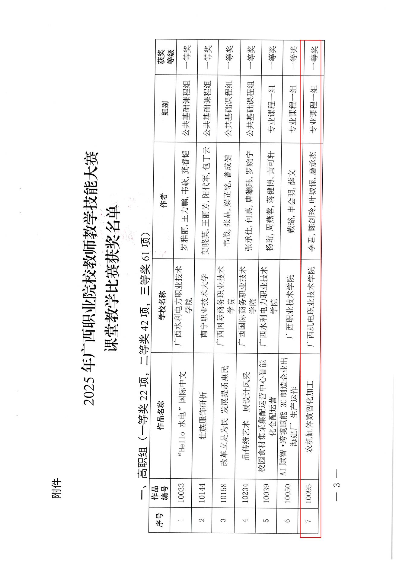 在第41个教师节来临之际,喜讯传来!根据《自治区教育厅关于公布2025年广西职业院校教师教学技能大赛课堂教学比赛获奖名单的通知》,taptap官网教师凭借出色的教学能力和专业素养,在比赛中荣获6个奖项,包括一等奖1项、二等奖4项、三等奖1项。获奖范围涵盖专业课程一组、二组及公共基础课程组,充分体现了taptap官网在机电特色专业建设与教育教学改革方面的显著成效。