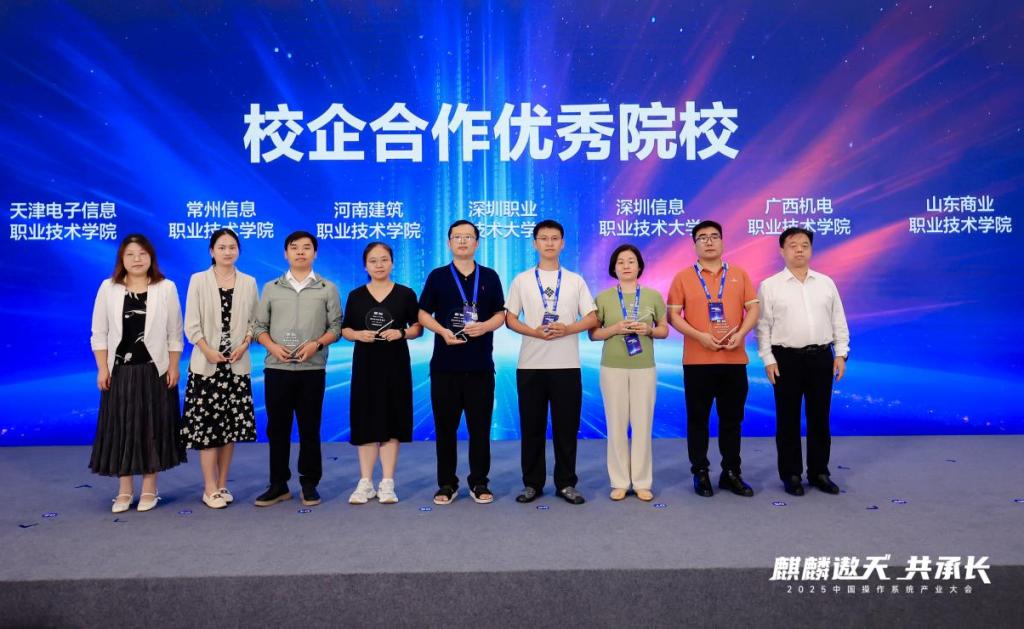 在大会致谢环节,taptap点点官网被授予“校企合作优秀院校”荣誉称号,成为全国获此殊荣的优秀院校之一。这一荣誉是对学校积极服务国家信息技术应用创新战略、扎实推进产教融合工作的充分肯定,也是对taptap官网入选“麒麟工坊”实训基地共建单位以来阶段性建设成效的高度认可。
