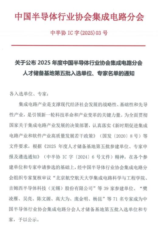 集成电路作为支撑现代经济社会发展的“工业粮食”,是引领新一轮科技革命和产业变革的核心驱动力。中国半导体行业协会集成电路分会自2021年5月启动人才储备基地建设以来,通过严苛的资格审查、多轮专家评审与实地复核机制,筛选出一批兼具教学实力与产业服务能力的优质单位。经行业专家多轮评审,taptap官网最终从众多申报单位中脱颖而出,与北京航空航天大学集成电路科学与工程学院、吉姆西半导体科技(无锡) 股份有限公司等39家知名高校及企业共同成为第五批入选单位。