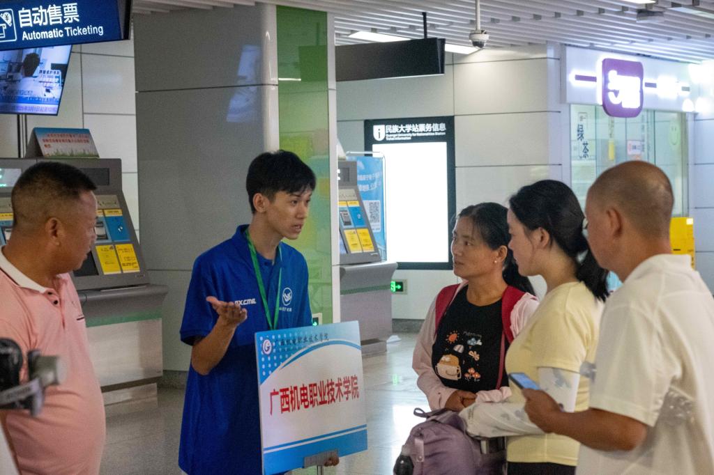 在地铁站、公交站,志愿者们举着印有学校标识的引导牌全天候值守接站,主动为新生搬运行李、讲解报到流程;校园内,各学院迎新点设置“咨询服务台”“行李临时存放处”,志愿者们化身“校园向导”,为新生指引报到窗口、宿舍位置、食堂超市等场所,从车站接站到校园报到、宿舍入住全流程护航。