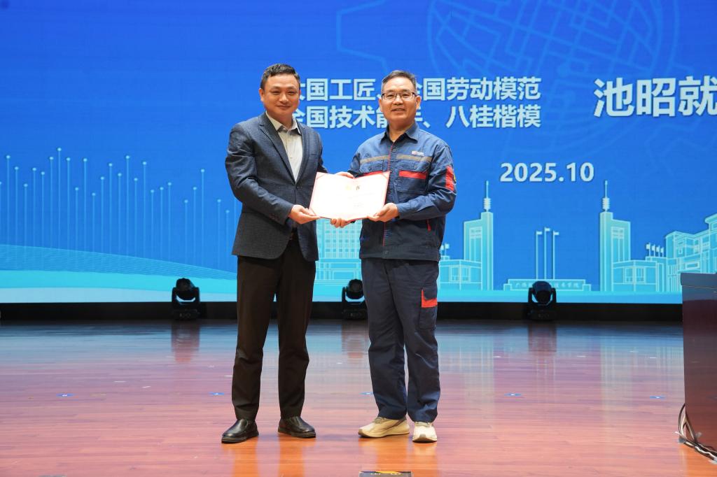 作为特级技师、国务院政府特殊津贴专家、广西玉柴模具装备有限公司首席技师,池昭就深耕模具制造与快速成型技术三十余载,带领团队突破多项“卡脖子”技术难题,获国家授权专利13项和全国劳动模范、中华技能大奖等多项荣誉,2025年荣获“大国工匠”称号。