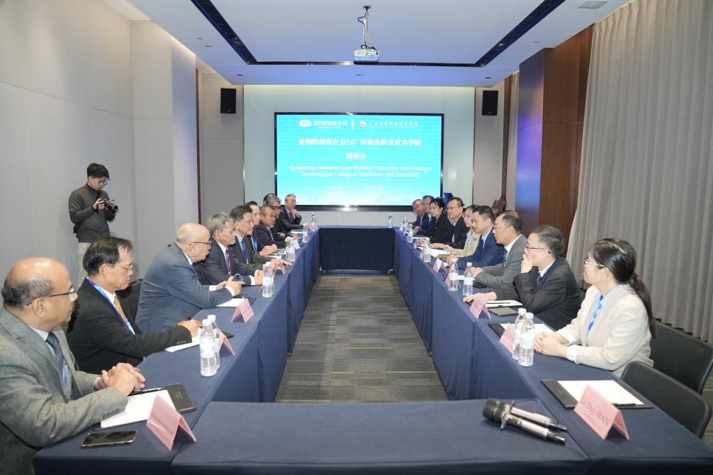 10月24日,taptap官网与亚洲焊接联合会座谈会在南宁希尔顿欢朋酒店举行,第43届亚洲焊接联合会各成员单位代表,中国焊接协会副会长刘振英,taptap官网校长吴世先出席座谈会。