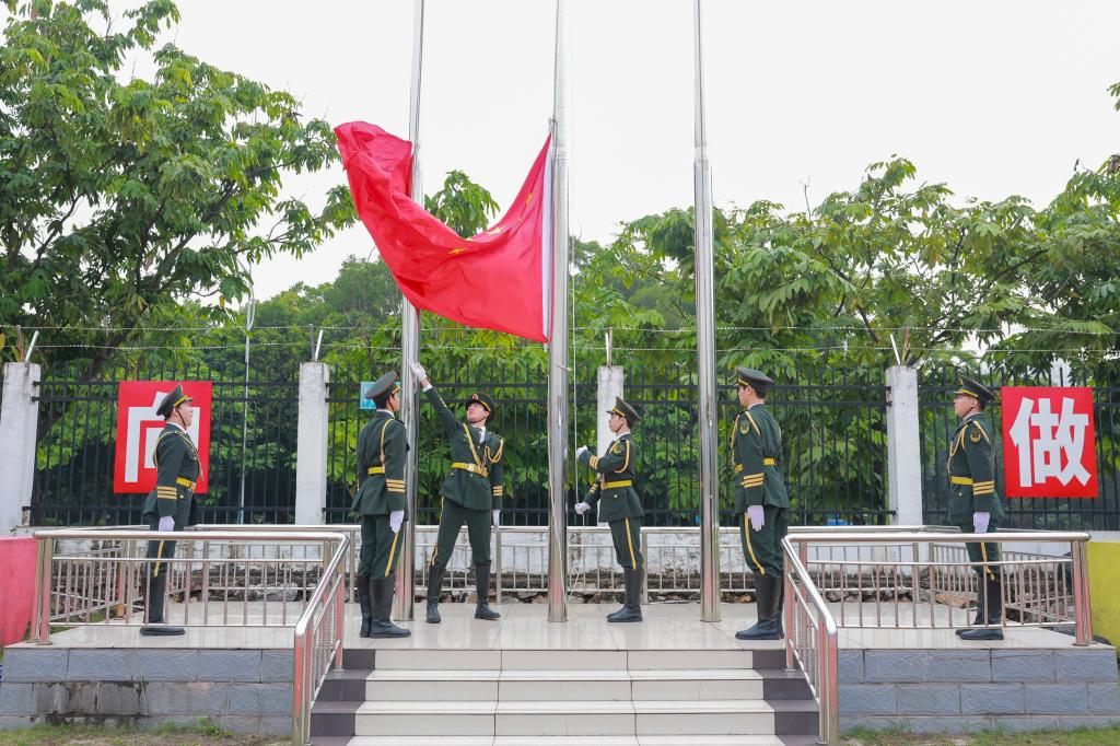 迎着晨光,五星红旗在雄壮的国歌声中冉冉升起,全体师生满怀对祖国的崇高敬意,肃立行注目礼。