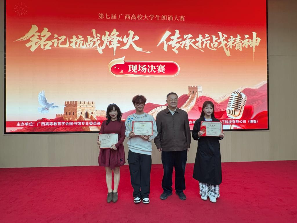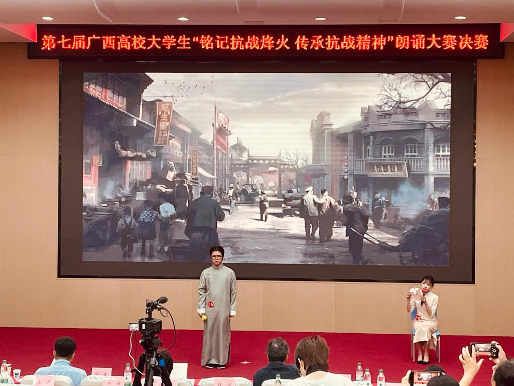 11月16日,第七届广西高校大学生“铭记抗战烽火 传承抗战精神”朗诵大赛决赛在南宁师范大学圆满落幕。作为广西高校范围内极具影响力的语言文化赛事,本届大赛共收到全区高校报送的13571个初赛作品,竞争尤为激烈。经过多轮严格选拔,48个优秀作品脱颖而出,入围决赛同台竞技。