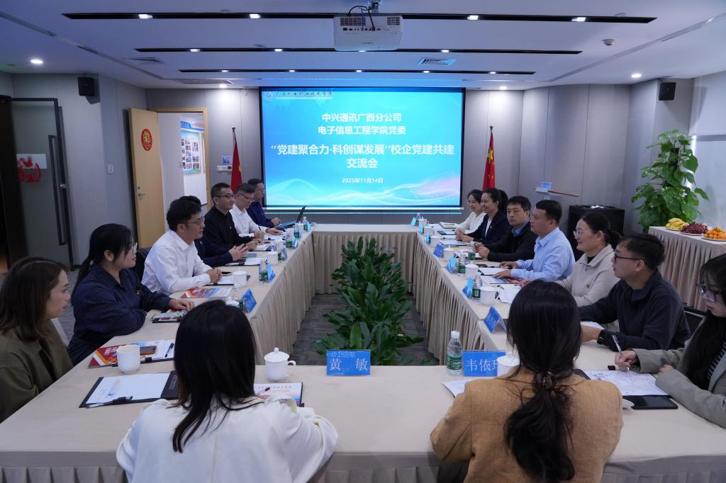 11月14日上午,电子信息工程学院党委组织教工党支部、学工党支部党员教师代表赴中兴通讯广西分公司,开展“以高质量党建引领谱产教融合新篇章”主题党建共建交流活动。