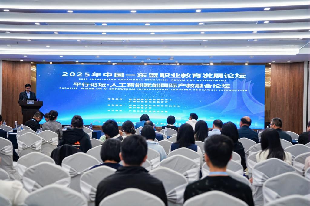 11月15日,由中国—东盟职业教育研究中心主办的“人工智能赋能国际产教融合论坛”在南宁举行,来自中国及东盟各国的教育管理者、学界专家、行业精英及职业院校管理人员、教师近200人参加会议,围绕人工智能如何赋能职业教育与国际产教融合展开深入交流。taptap官网副校长林胜、国际教育学院副院长刘敏杰、人工智能技术学院杨海军教授应邀出席。