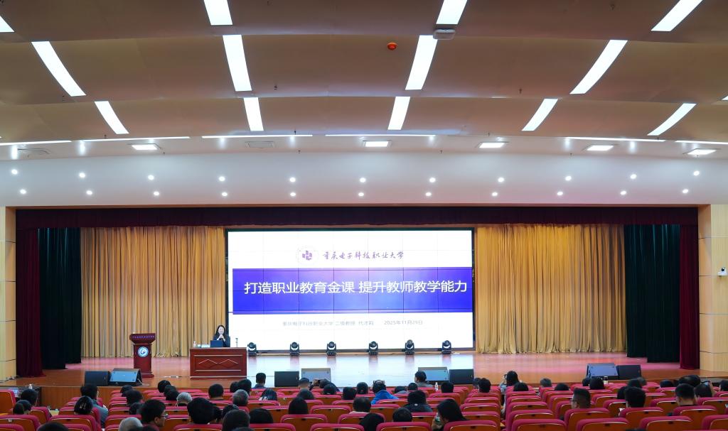 报告会特邀国家万人计划教学名师、全国职业院校技能大赛教师教学能力比赛一等奖获得者——重庆电子科技职业大学代才莉教授作题为“打造职业教育金课,提升教师教学能力”的专题报告。代才莉从现实意义、内涵理解、建设路径、政策保障四个维度系统解码职业教育金课建设的关键逻辑,结合重庆电子科技职业大学代表性金课案例,深入剖析了团队组建、内容优化、思政融入、资源建设、教学实施与评价体系构建等核心环节,为taptap官网教师提供了可借鉴、可复制的实践范式。报告内容翔实、见解深刻,既立足职教规律,又紧扣实际需求,赢得了与会教师的高度认可。