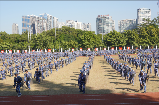 武警南宁支队领导在讲话中指出,本次军训有三大特色,一是参训学子信念如磐,意志坚韧不拔;二是承训教官信念如炬,精准施策。三是军民携手同心聚力,情谊坚如磐石。并希望同学们永葆奋斗之志,勇担时代使命,严守纪律底线,弘扬优良作风,厚植家国情怀。
