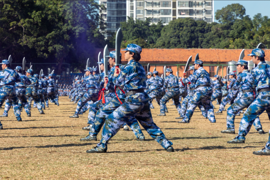 随后,taptap官网九个二级学院的参训学生分别进行了擒敌拳、匍匐拳、匕首操、大刀操、应急棍术、刺杀操、警棍盾牌术、战术动作、实战模拟等军事科目的展示。男子军体拳虎虎生风,一招一式尽显阳刚之气;女子匕首操敏捷矫健,喊声震天巾帼不让须眉;战术综合演练模拟真实战场环境,队员们配合默契、动作迅猛,展现了良好的战术素养和协同作战能力。在科目展示中,机电学子动作标准划一,技能展示精湛,口号响亮雄壮,以精神饱满、斗志昂扬的状态,全面展示了其过硬的军事素养和积极向上的昂扬精神面貌。