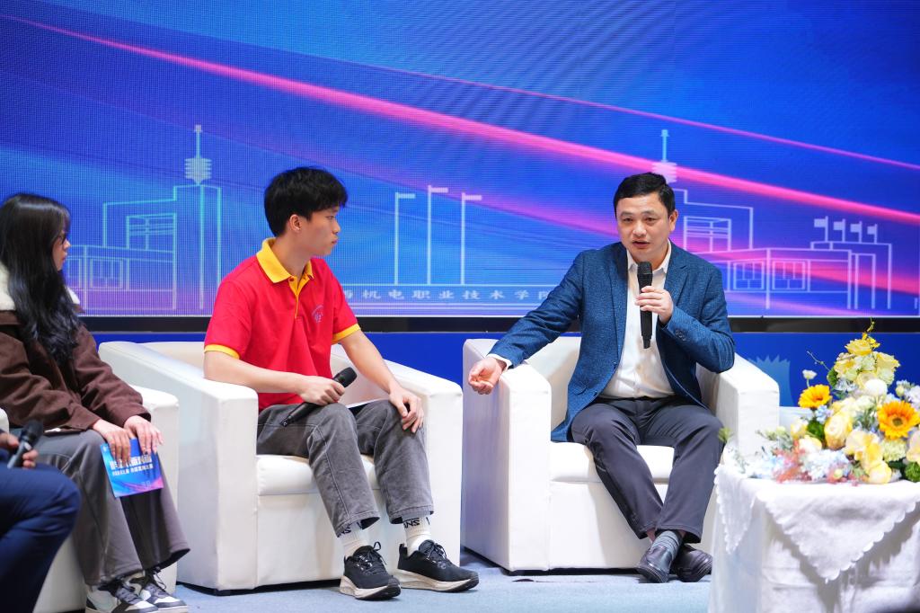 在我与校长面对面环节中,吴世先与六位来自不同学院学生代表围绕校企合作、教学设备更新、升本规划、校园实训、跨境赋能、退役转型等议题深度互动。这种从“听我说”到“我们一起说”的转变,既彰显了学校开放民主的治理理念,更诠释了“教学相长”的育人真谛,让学子真正成为学校发展的参与者与建设者。
