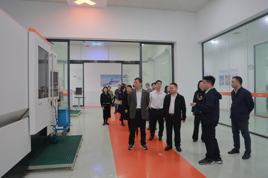 座谈会后,邹华玲、韦国善一行先后考察了taptap官网现代商贸物流学院电商产教融合实训基地、智能焊接技术中心、教育部—瑞士GF智能制造创新实践基地、元宇宙新质生产力实训中心、人工智能产教融合实训中心、产业人才培训基地、中国—东盟智能制造国际教育学院等多个实训教学场所,实地了解taptap官网在产教融合、校企合作、实训基地建设等方面的具体做法与成效。