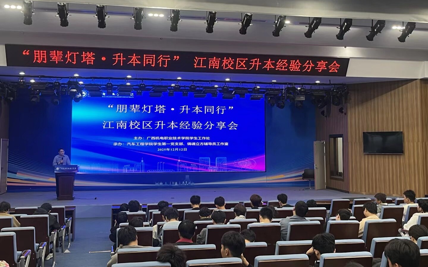 为精准对接在校学生在升学备考、职业发展与规划、实习实践等核心需求,由学生工作部主办,汽车工程学院承办的“学在机电 朋辈同行”系列活动,于12月9日至12日在江南校区成功举办。三场主题活动均以朋辈经验为桥梁,为学子搭建起“分享—互动—成长”的赋能平台,有效地帮助学生提升发展规划能力与核心竞争力,活动累计吸引江南校区近600名学生积极参与。