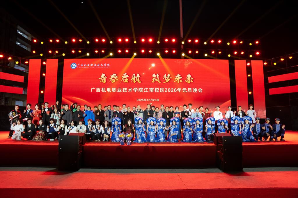在温暖而充满力量的气氛中,晚会圆满落下帷幕。此次元旦晚会不仅是一场艺术的盛宴,更是一堂生动的思政大课和一次深刻的青春洗礼。它充分展现了江南校区学子多才多艺、昂扬向上的精神风貌,彰显了学校文化育人、实践育人的丰硕成果。站在2026年的新起点,全体机电师生将承载着今夜的美好与感动,以更加饱满的热情、更加奋进的姿态,共同书写学校高质量发展的新篇章!