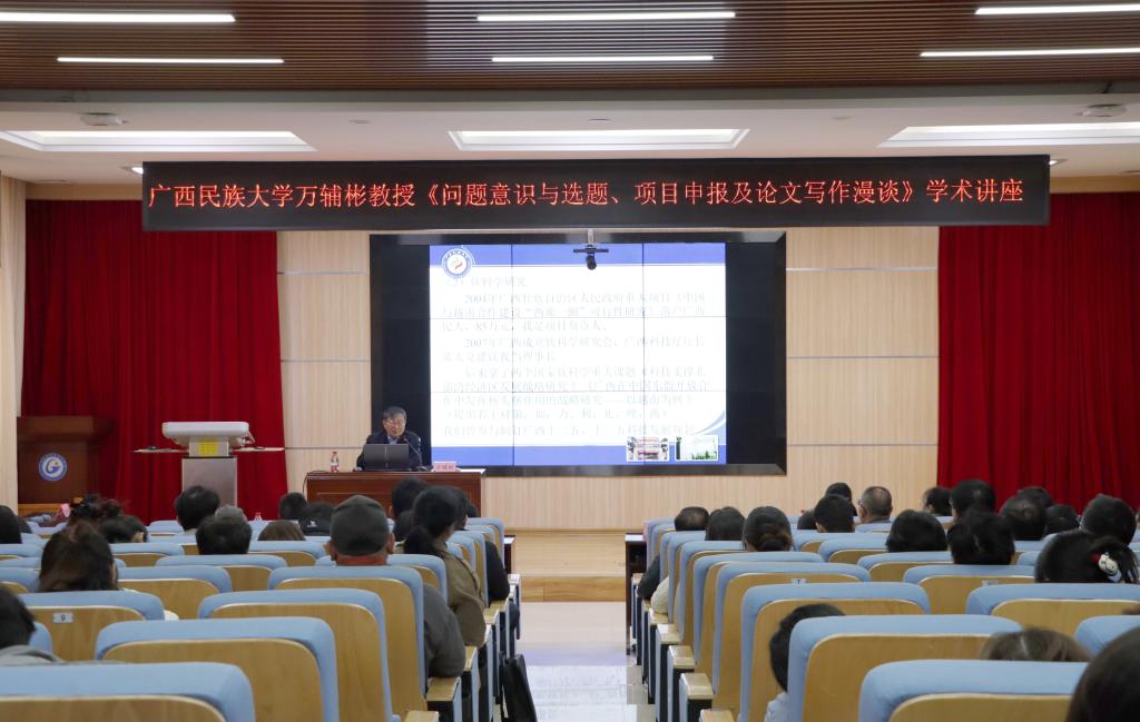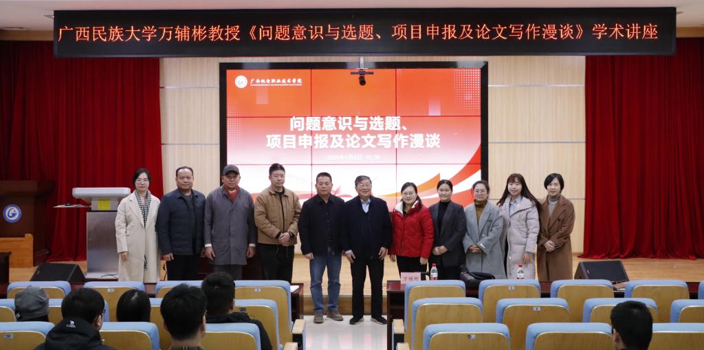 为深化科研与教学融合,以学术创新驱动专业群建设,助力学校专业转型提质,1月6日,学校科研与校企合作中心与工业设计学院特邀广西民族大学原副校长、资深教授、博士生导师万辅彬到校开展《问题意识与选题、项目申报及论文写作漫谈》专题讲座。工业设计学院、现代商贸物流学院等教师代表共同参与。