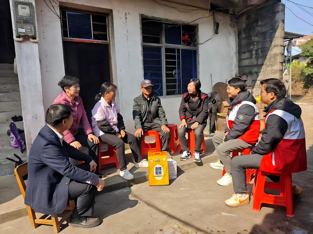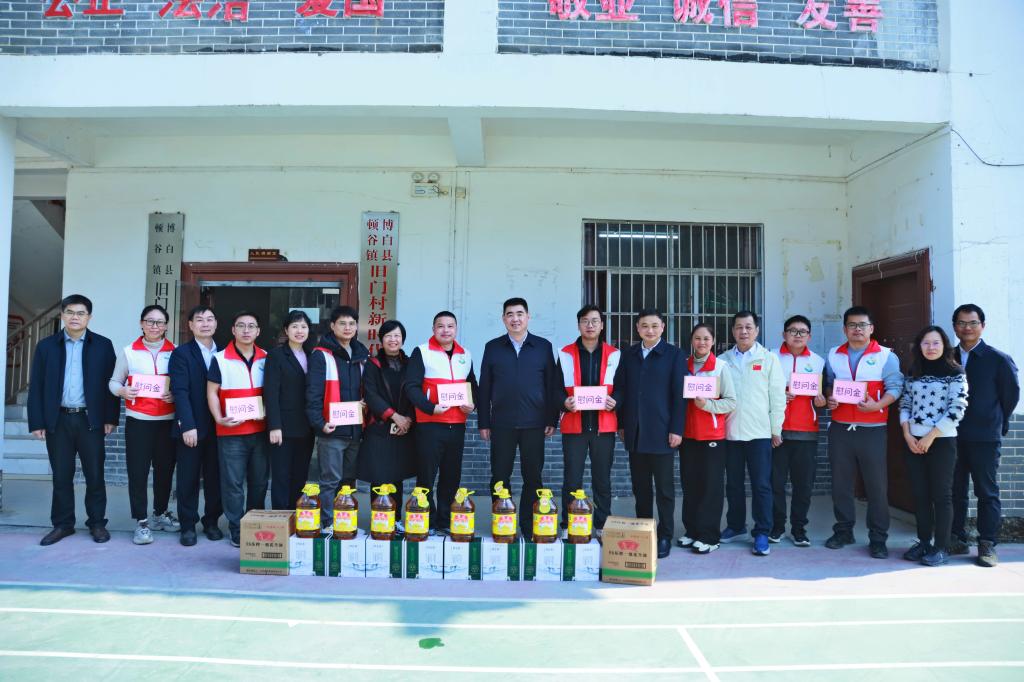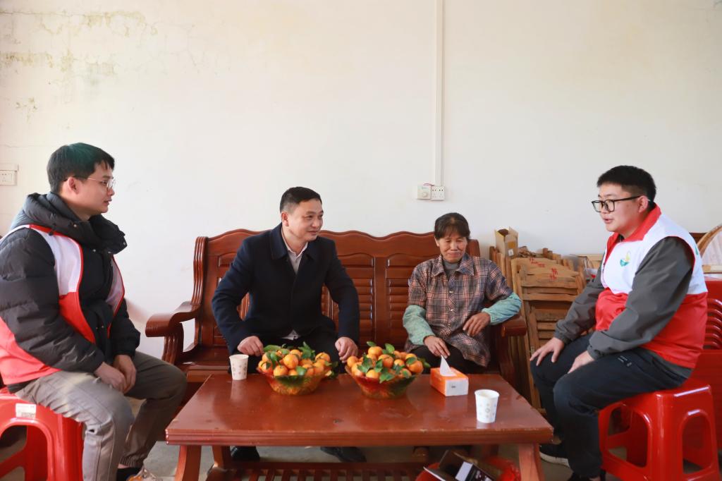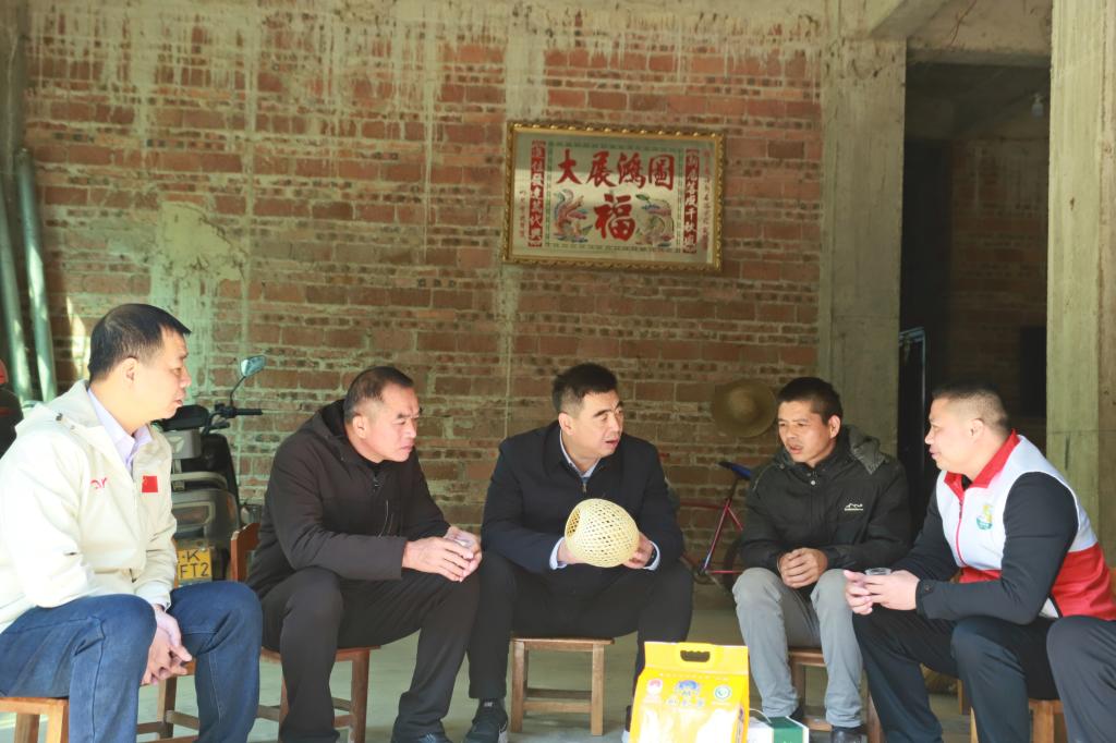在博白期间,党委班子成员分别带队深入水鸣镇联合村、双桂村、新丰村和顿谷镇盘古村、旧金村、旧门村等6个定点帮扶村,开展新春慰问活动。走进帮扶群众家中,与群众亲切交谈,了解家庭收入、生活近况及实际需求,为他们送上新春祝福,将学校的关怀与温暖切实传递到群众心中。来到驻村干部办公点、宿舍里,详细了解他们的工作与生活保障情况,勉励大家继续保持优良作风,在乡村振兴一线再立新功。深入田间地头、产业基地,实地调研帮扶村特色产业发展与村集体经济增收情况,听取对学校帮扶工作的意见建议。