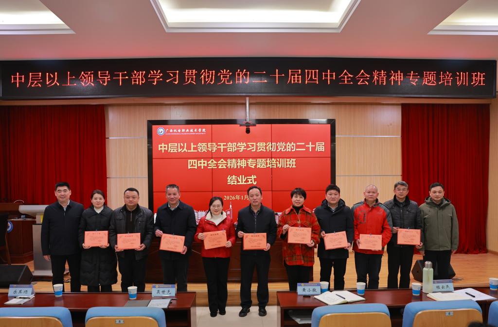 吴世先在总结讲话中指出,本次培训班时机把握得当、主题选择精准、内容充实管用、组织保障有力,全体学员在理论学习中深化了对党的二十届四中全会精神的理解和把握,在交流研讨中凝聚了发展共识,培训取得了预期成效。他强调,当前学校正面临“三个到来”的重大机遇与挑战,希望全体干部坚定信心、锚定方向、主动谋划、深化赋能、抓好落实,将学习成果转化为干事创业的实际行动,秉持 “不畏过往、不惧将来” 的信念,共同朝早日建成“广西领先、国内一流、国际知名高水平智能制造特色校” 的目标奋勇前进。