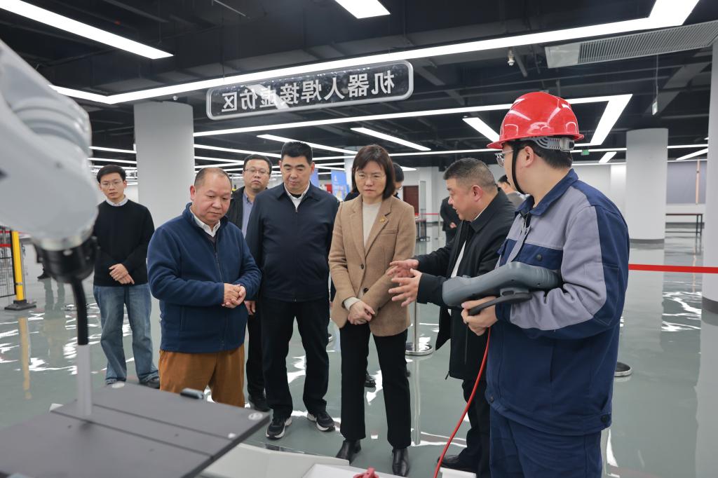 2月9日下午,自治区工业和信息化厅副厅长柯梅一行到taptap官网江南校区产业人才培训基地,实地调研机器人产业创新中心建设推进情况,学校党委书记黄小敬、自治区汽车与机械工程院党支部书记、副院长王迎欣、校长助理秦培林陪同调研。