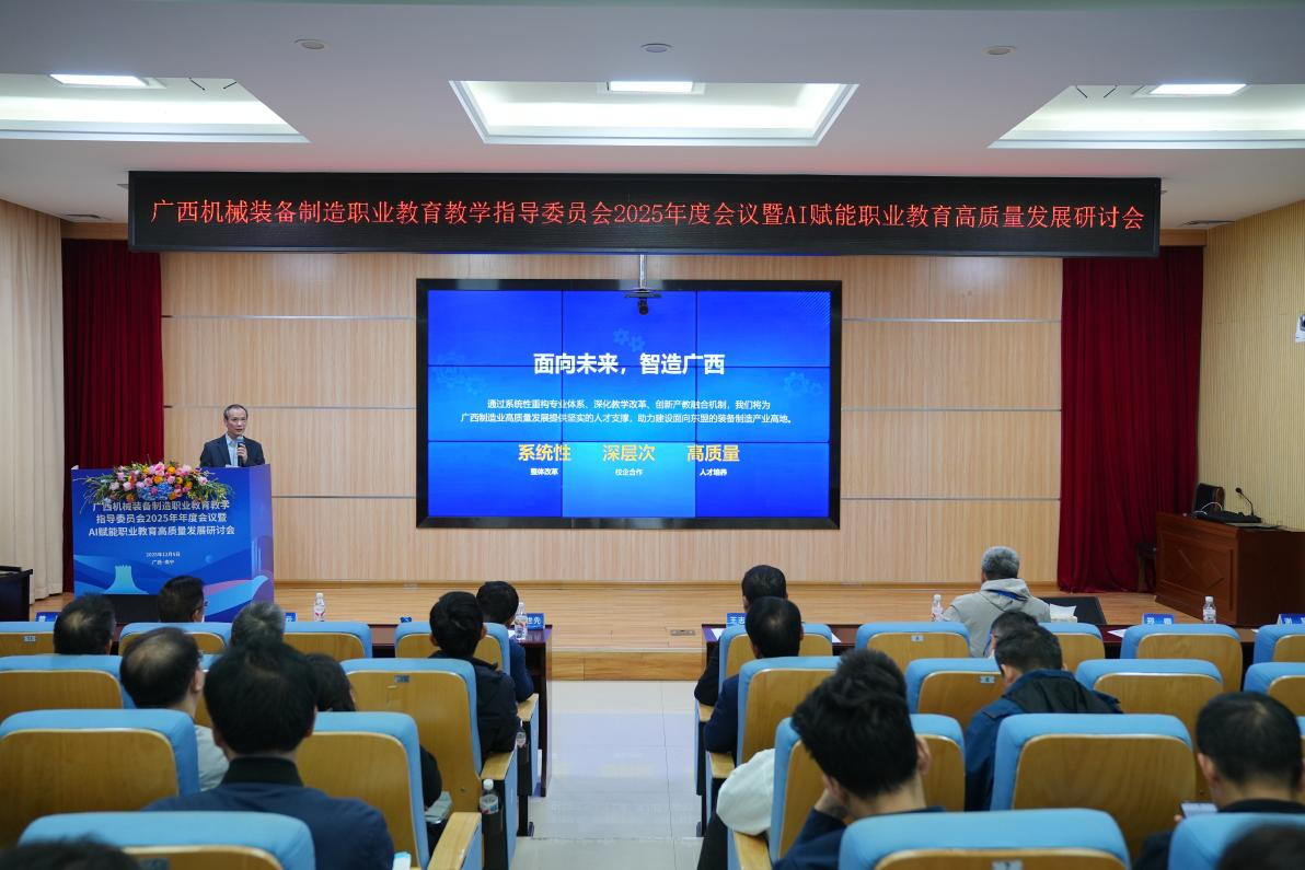 与此同时,学校紧扣时代脉搏,聚焦技术前沿,搭建高端交流平台助力内涵发展。2025年12月5日,由广西机械装备制造职业教育教学指导委员会主办、taptap官网承办的AI赋能职业教育高质量发展研讨会顺利举行。谢黧、黄凯、郑卿、梁裕、黄立新、钮因昌等六位专家学者及行业代表,围绕人工智能赋能教育教学、职业教育内涵重构、产研学协同育人、院校数智化转型、新质教育探索、数据人才培养等核心主题展开深入研讨,学校178名骨干教师参加了研讨。此次研讨会不仅为我区机械装备制造领域职业教育搭建了高效交流平台,更为taptap官网推动专业升级、深化产教融合指明了“AI+”实践方向。