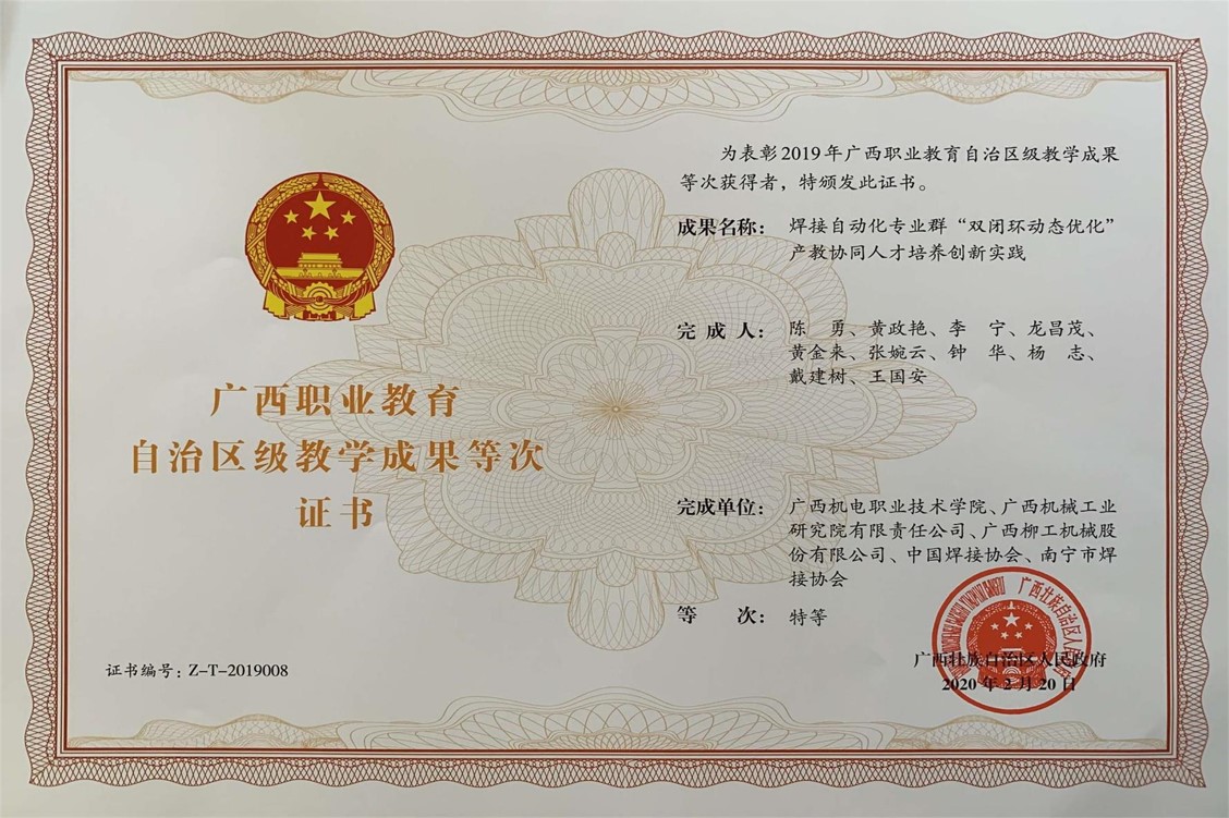 广西机电职院深入推进品牌专业、人才培养、内部治理等关键领域的建设与改革。主动对接机械、汽车、电子信息等广西优势特色产业,全面推进学校技术技能人才培养高地、高水平师资队伍等九大改革任务,经过3年的建设,学校整体办学水平得到全面提升,取得全国党建工作样板支部、国家级教师教育教学创新团队、“十三五”职业教育国家规划教材、全国职业院校技能大赛一等奖、全国技术能手、广西壮族自治区级教学成果特等奖、广西职业院校技能大赛一等奖等国家级成果29项、省部级成果355项。