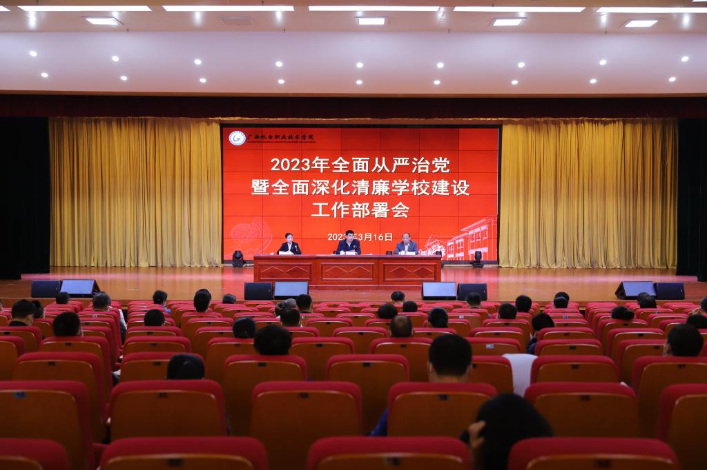 黄小敬书记强调,2023年是全面学习贯彻党的二十大精神的开局之年,是落实习近平总书记对广西“五个更大”重要要求、加快推进新时代壮美广西建设的关键之年,深入推进全面从严治党具有特殊意义。做好今年的全面从严治党工作要坚持以习近平新时代中国特色社会主义思想和党的二十大精神为指引,深刻领悟“两个确立”的决定性意义,增强“四个意识”,坚定“四个自信”,做到“两个维护”,牢记“两个永远在路上”,落实全的要求、严的基调、治的理念,围绕落实党的二十大战略部署,健全全面从严治党体系,持续深入纠治“四风”,全面加强党的纪律建设,深入推进清廉学校建设,巩固发展风清气正的政治生态与和谐稳定的育人环境。要提高政治站位,保持“永远在路上”的清醒和坚定,深刻把握全面从严治党工作形势,要聚焦重点任务,坚持严的主基调不动摇,持续提升全面从严治党工作质量,要重实效强实干抓落实,以“永远吹冲锋号”的坚韧和执着,奋力推进全面从严治党取得更大成效。