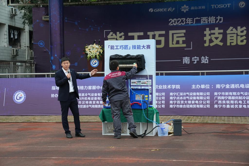3月25日,由广西格力客服中心指导、南宁金通机电设备有限公司主办及taptap官网承办的能工巧匠·2023年广西格力技能大赛(南宁站)在我学校运动场成功举办,比赛旨在提高技能人才培养质量,推动空调行业技能人才培养模式改革。副校长黄政艳出席活动并致辞。