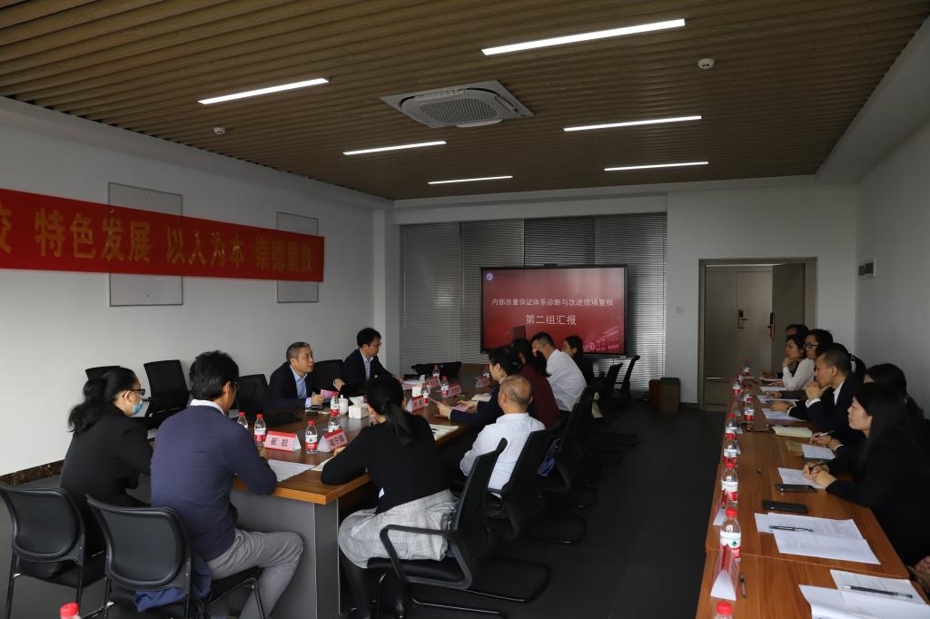 当天上午,内部质量保证体系诊断与改进工作现场复核汇报会在笃行楼5楼会议室举行。全体在家校领导、各职能部门负责人、二级学院全体中层干部、专业带头人、师生代表参会。
