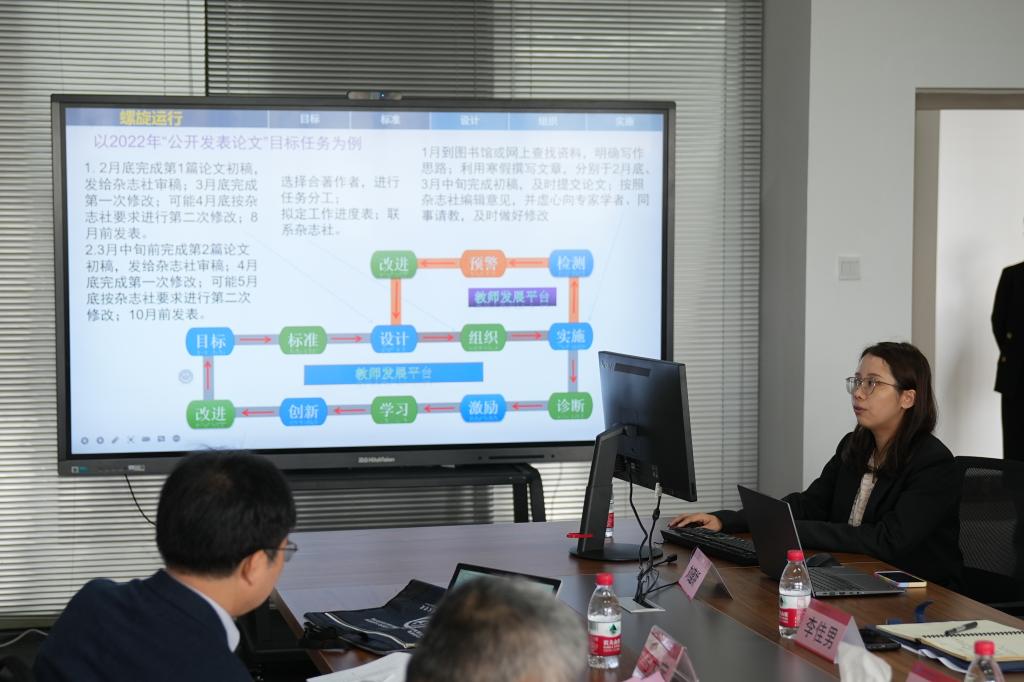 会议第二阶段是汇报环节,黄小敬代表学校从诊改基础、两链打造、螺旋运行、诊改成效、存在问题和改进方向等五个方面对学校层面诊改工作进行了全面的梳理汇报。相关专业负责人、教师从专业层面、教师层面等进行了专项汇报。