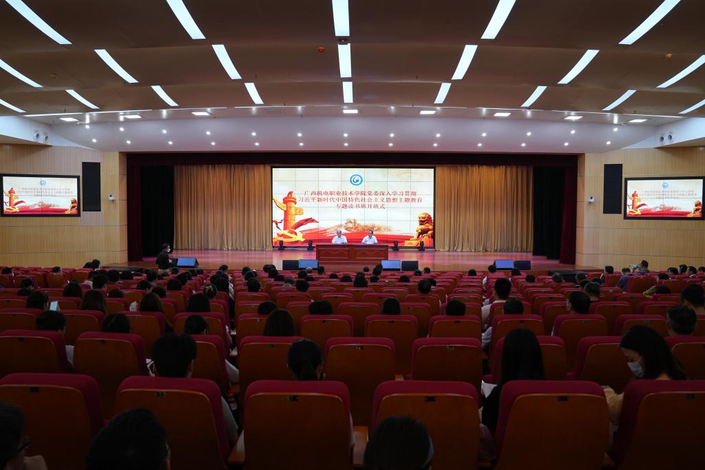 为全面、系统、深入学习贯彻习近平新时代中国特色社会主义思想,5月6日下午,学校党委在博远楼小礼堂举行学习贯彻习近平新时代中国特色社会主义思想主题教育读书班开班式暨专题辅导讲座。中共广西区委党校哲学教研部主任李广义教授应邀作专题辅导报告,受学校党委书记、主题教育领导小组组长黄小敬委托,学校党委副书记、主题教育领导小组副组长陈科鹤做开班动员讲话,学校副校长黄政艳主持会议,学校领导,全体中层干部和全体教师党员参会。