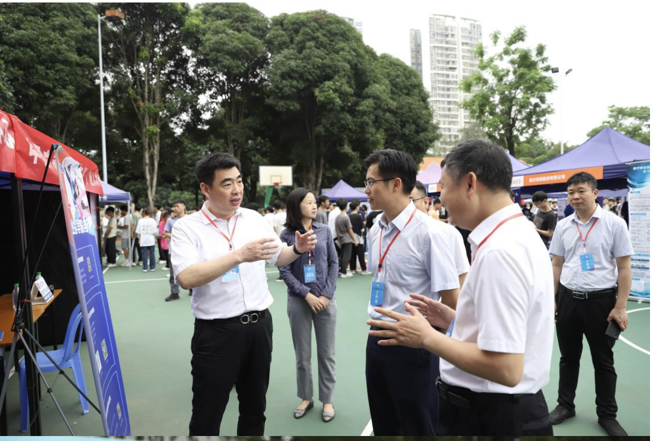 启动仪式后,学校领导黄小敬、陈科鹤、林华一行来到双选会现场,详细了解参会企业的发展现状、人才需求,为毕业生所提供的岗位情况、工作内容、发展空间、薪资待遇等。