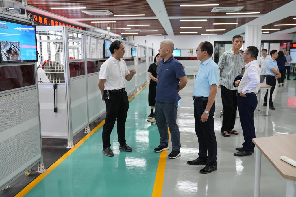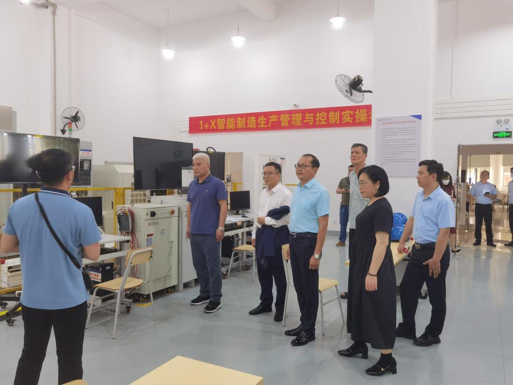 会前,调研组一行实地参观了学校电梯实训室、创新实训室、欧姆龙学院精益生产实训室、智能制造创新中心、智能焊接技术中心,了解学校在服务产业发展、培养技术技能型人才等方面的情况。