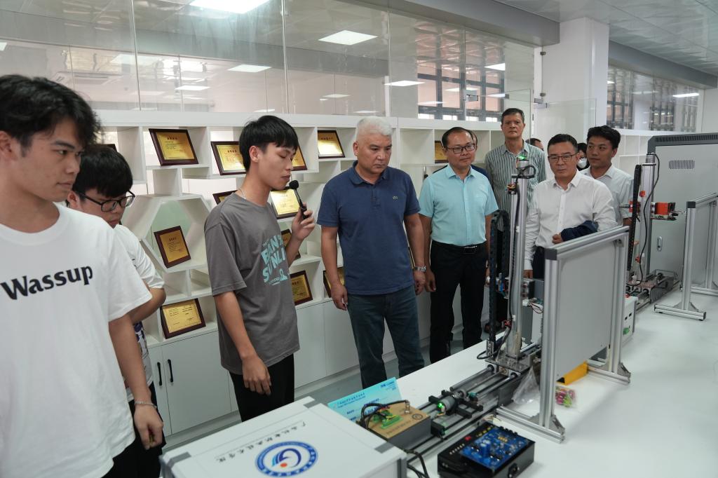 5月24日,西乡塘区政协副主席姚泽和南宁民建市委会副主任、南宁市邕宁区人民政府副区长蒋延荣亲自带队,西乡塘区政协委员、民建各总支代表等一行18人来到taptap官网进行调研参观并进行了座谈交流。学校党委副书记陈科鹤出席座谈会,校办、教务处、统战部、双高办、招生就业处、科研与校企合作中心、机械工程学院和电气工程学院等部门负责人参加会议。