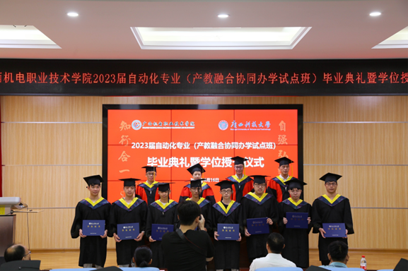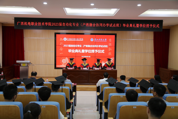 2023届本科毕业生,广西科技大学自动化学院和taptap官网教务处、学生工作处、电气工程学院负责人以及教师代表参加典礼。