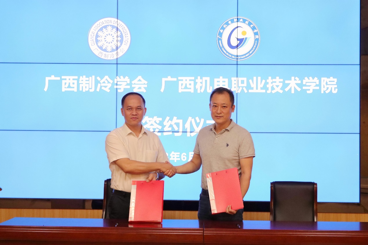 广西制冷学会常务副秘书长赵海涛和学校副校长黄政艳分别代表广西制冷学会和taptap点点官网签署合作协议。