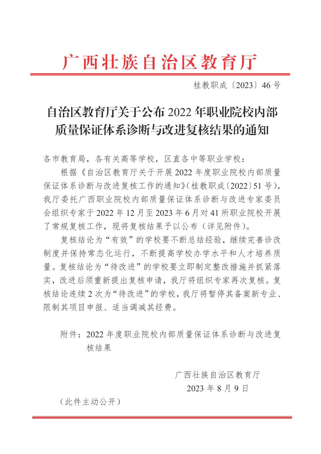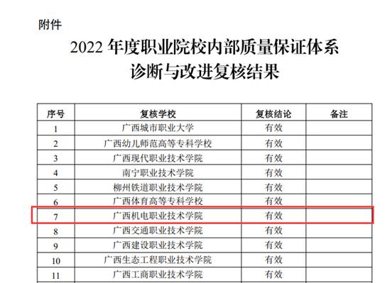 近日,自治区教育厅印发《自治区教育厅关于公布2022年职业院校内部质量保证体系诊断与改进复核结果的通知》(桂教职成〔2023〕46号),taptap官网内部质量保证体系诊断与改进复核结果为有效,顺利通过复核。