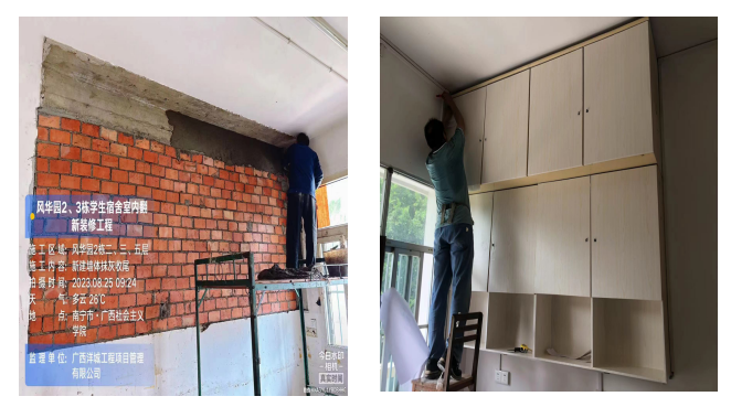 学生宿舍沁宁园1-3栋和风华园1-3栋学生宿舍室内翻新装修及床铺更换、教学楼所有教室安装空调及供电线路增容安装改造(第一、二、三、五教)、学生宿舍东区给水管道更换改造、学生宿舍壁柜张贴纸翻新、图书馆照明灯更换改造等。