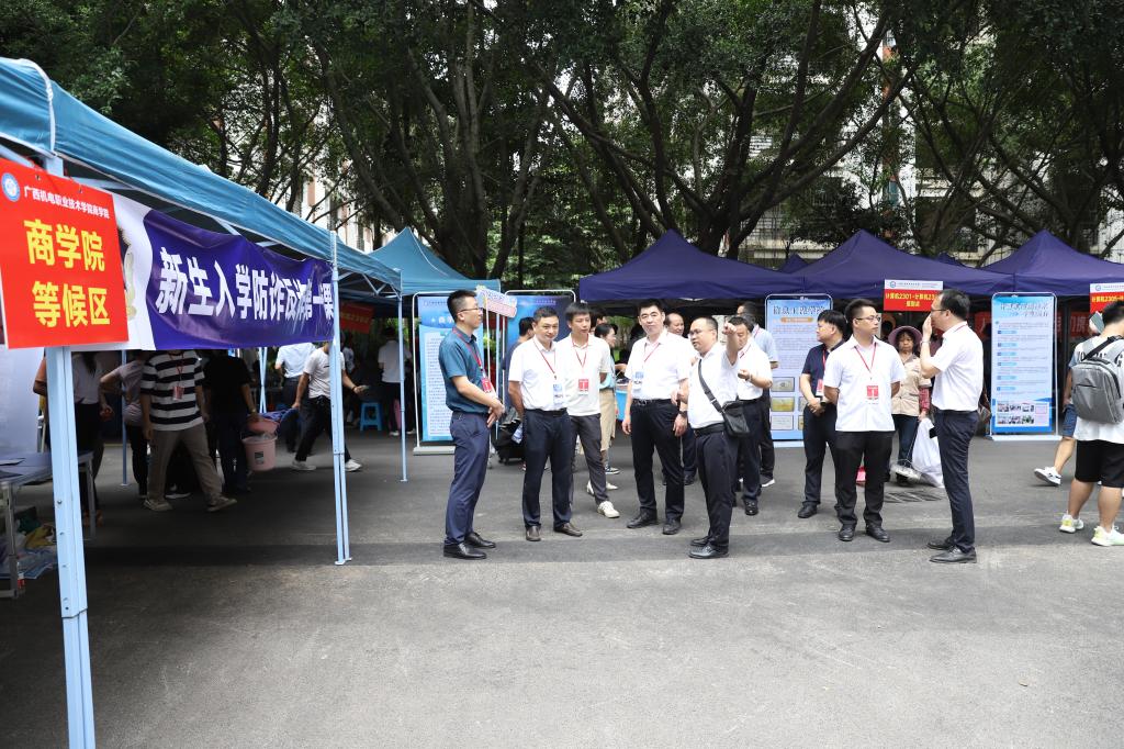 学校党委书记黄小敬,党委副书记、校长吴世先,党委副书记陈科鹤,校长助理秦培林、黎盛寓及相关部门负责人到相思湖校区、思源湖校区细致了解各项迎新工作开展情况,慰问师生志愿者和工作人员。