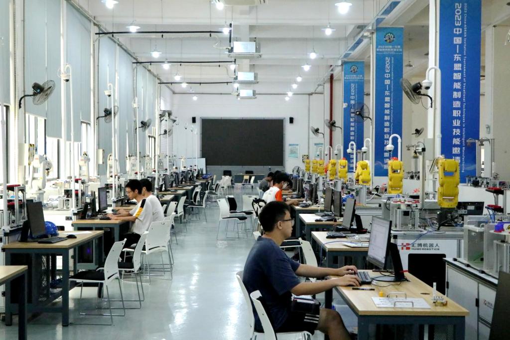 2023中国—东盟智能制造职业技能邀请赛将于9月16日在学校明理楼1+X工业机器人考培中心举办。目前,赛事所需的设备设施等均已配置到位,来自中国和东盟国家的20所高职院校的技能精英将在此竞技角逐。