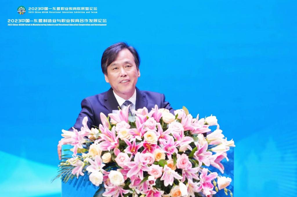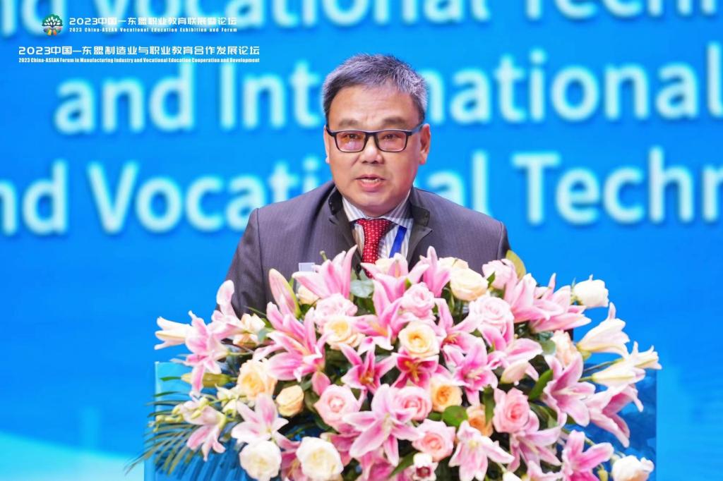 广西教育厅党组成员蔡春表示,近年来,广西努力提升职业教育关键能力,推进职普融通、产教融合、科教融汇,提升职业教育对外开放合作水平,推动中国与东盟合作提质增效,携手东盟国家的教育部门及职业院校共同打造中国-东盟职业教育开放合作创新高地。近十年来,中国与东盟在职业教育领域的合作硕果累累。希望论坛能够达成以下愿景:一是开展更多务实的交流合作,互相借鉴先进教育经验,共享优质教育资源,搭建中国-东盟智能制造人才培养新平台。二是共同探讨产业对人才的新需求,提升职业教育培养本土技术技能人才服务企业和社会经济发展的能力。三是通过构建更为紧密的中国-东盟职业教育共同体,更好地服务“一带一路”建设。