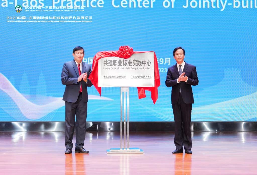 在论坛开幕式上,还举行了中国—老挝共建职业标准实践中心揭牌仪式和中国—东盟高端装备制造职业教育集团成立暨揭牌仪式。