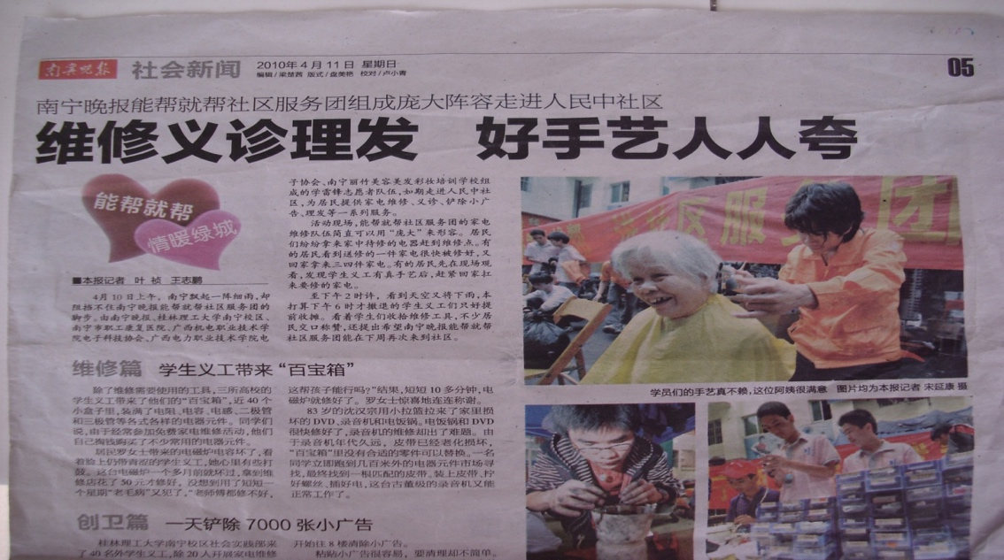除了素质培养,协会还很注重服务意识的强化,广泛开展校园和社区义务维修活动,多次参加学校组织的暑期“三下乡”,自成立以来,协会共帮助师生及社区群众维修电器产品8278件,维修成功率近九成。