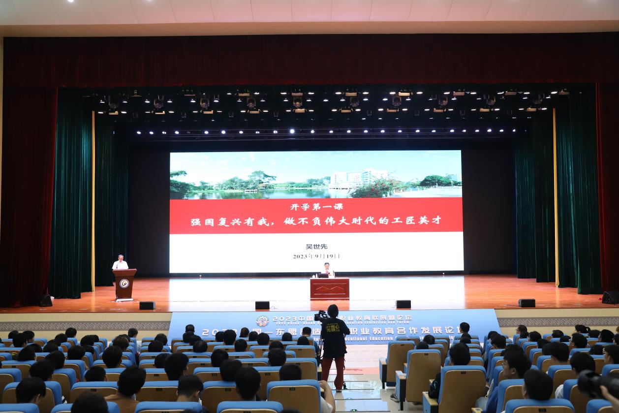 为深入学习贯彻习近平新时代中国特色社会主义思想,贯彻落实党的二十大精神,紧紧围绕落实立德树人根本任务,进一步深化思想理论教育和价值引领,引导同学们坚定成才梦想,树立强国复兴有我的远大志向,全身心投入新学期学习生活,9月19日,学校在弘毅楼大礼堂举办“开学第一课”活动。学校党委副书记、校长吴世先以《强国复兴有我,做不负伟大时代的工匠英才》为题给同学们讲授“开学第一课”。