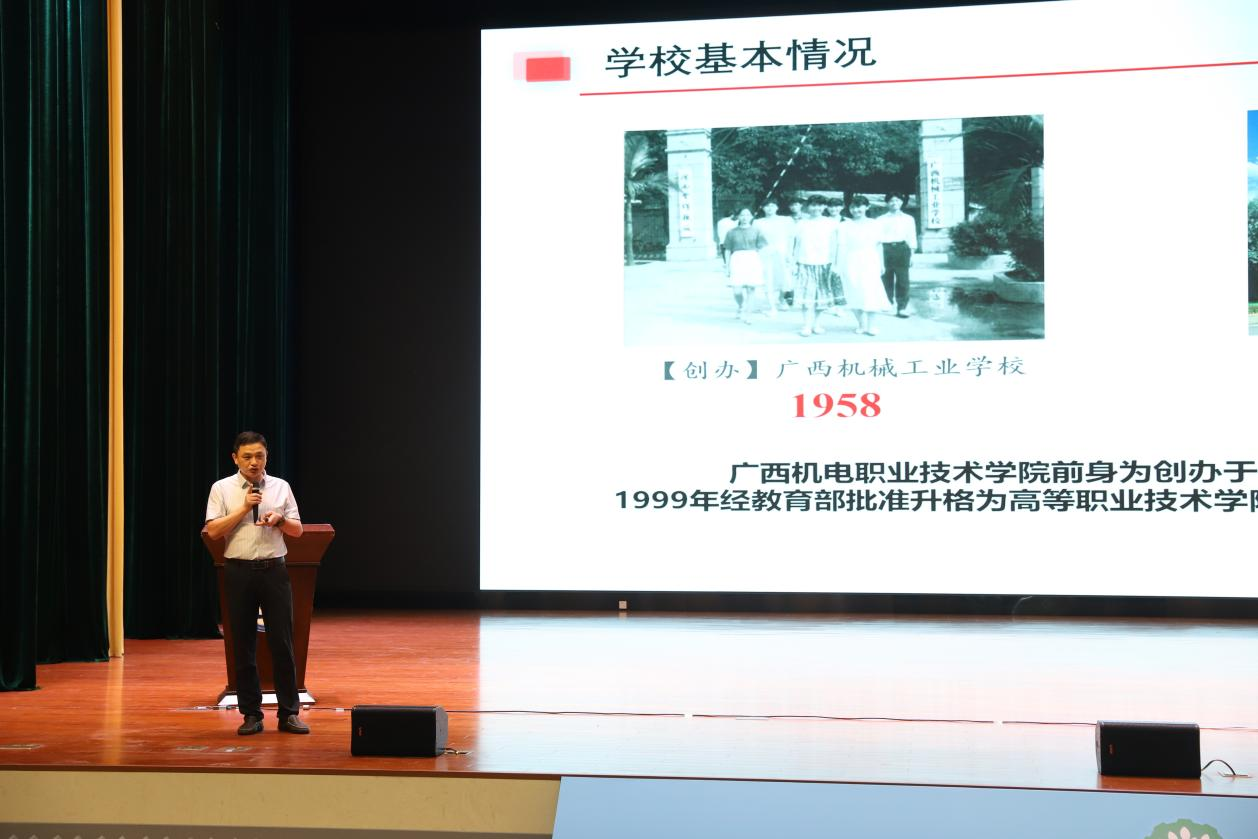 学校应工业生产而生、依机械行业而立、伴智能制造而强,建校65年来,已发展成为广西专业门类最全、规模最大、历史最久的工科类高职院校。学校始终秉承为行业服务的宗旨,经过多年办学实践,逐渐形成了一套符合职教特色、独具机电基因的办学理念,为广西机械工业由小到大、由弱到强、由国内到国外的持续发展做出了突出贡献。学校已成为广西服务机械行业的标杆校,培育技术人才的领头羊,助推产业升级的排头兵,探索教随产出的先行者。随着吴世先的讲述,同学们深刻认识了学校的历史,激发了爱校荣校之情,为学校多年来坚守育人初心使命,坚持服务国家战略,取得跨越式发展而深感自豪。