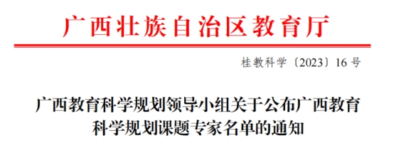 近日,广西教育科学规划领导小组发布通知,taptap官网黄政艳教授等8名教师入选广西教育科学规划课题专家库。这标志着taptap官网教师在教育科研方面的专业能力和贡献得到广西教育科学规划领导小组的认可。