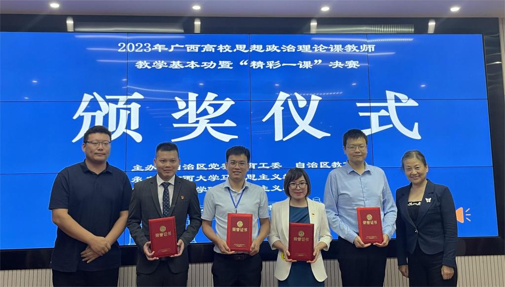 2023年10月14日,广西高校思政课教师教学基本功暨“精彩一课”比赛决赛圆满落幕。此次比赛分为初赛和决赛两个阶段,全区高校本专科院校在内共计两百多位思政课教师参加此次比赛,其中30名教师进入现场决赛。比赛最终评出特等奖10项(高职高专组4项、本科组6项),一等奖20项。经过现场教学的激烈角逐,taptap官网马克思主义学院教师宁锦峰凭借扎实的教学基本功、精心打磨的教学内容、优异的临场表现,荣获本次比赛特等奖。这是taptap官网自2020年以来连续四年获得该比赛最高奖项。