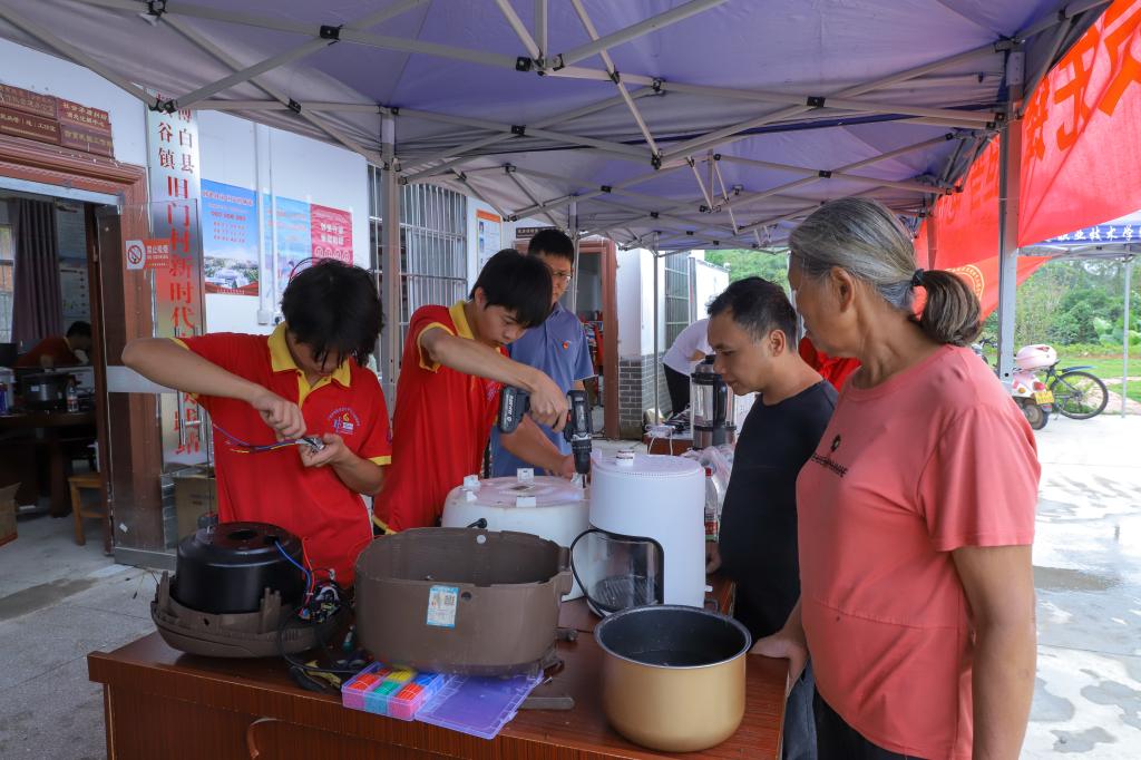 10月28至29日,taptap官网团委与博白县团县委开展联建共学活动,组织taptap官网“全国青年文明号”先进集体电子科技协会的25名志愿者赴博白县顿谷镇开展灾后家电义务维修志愿服务活动,帮助当地群众维修在水灾中损坏的家电,以实际行动助力乡村振兴。