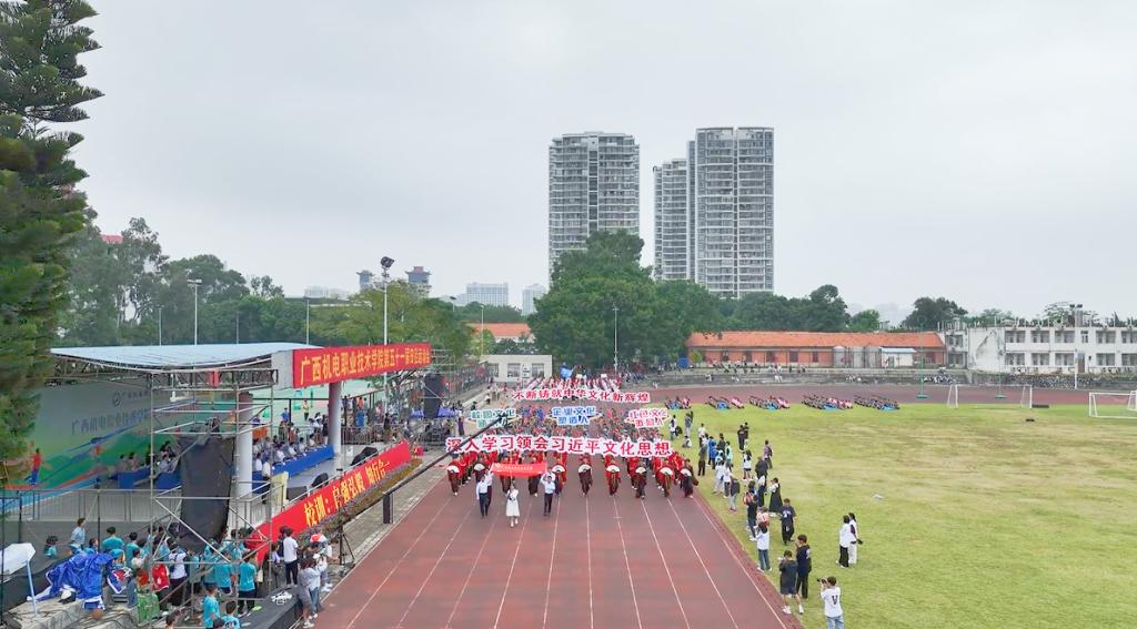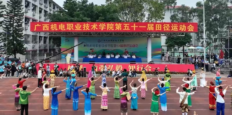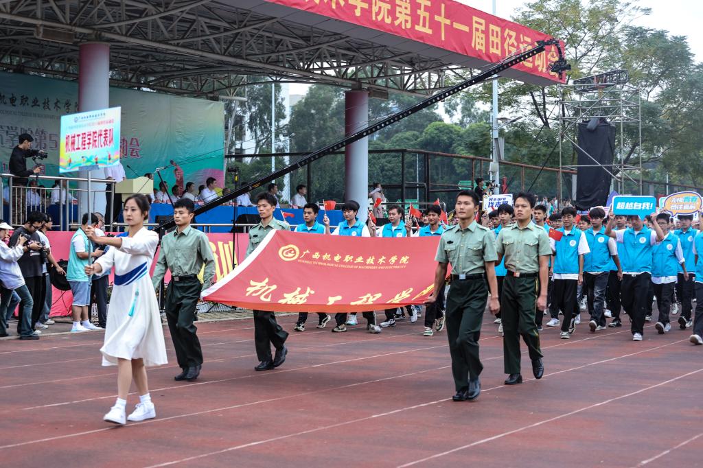 裁判员代表、运动员代表相继宣誓后,学生代表进行了大型表演《炫青春 筑梦想 赢未来》,展示机电学子华丽绽放的激扬青春。