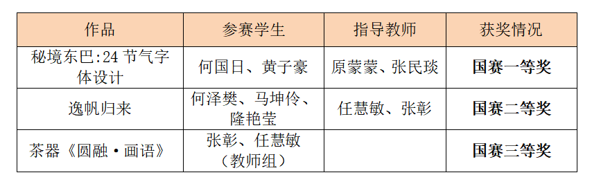 今年以来,taptap官网艺术设计学院依据自治区教育厅年初发布的2023年广西高校大学生学科专业竞赛文件制定备赛计划,根据各赛项精神组织专项指导,通过遴选,作品不断打磨提升,各大赛作品较去年数量、质量均大幅度提升,获奖数量再创新高,共获得国赛一等奖2项、二等奖2项、三等奖5项,区赛一等奖12项、二等奖24项、三等奖37项。