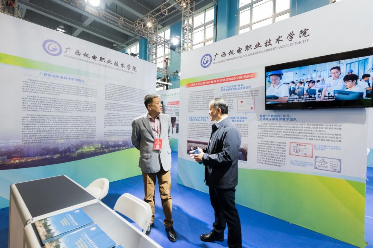 在产科教融合成果展示会现场,中国机械工业联合会党委常委、原执行副会长、全国机械职业教育教学指导委员会主任于清笈,机械工业教育发展中心主任陈晓明,中国职业技术教育学会副会长、天津大学职业教育研究所所长孙善学等专家学者观摩了taptap官网产科教融合成果展示。学校副校长黄政艳教授为专家们分别介绍了学校在双高建设、产科教融合、专业建设、教师教学创新团队建设的情况。通过展示会,taptap官网向机械行业展示了学校在推进教学教育改革实现高质量发展方面的成果和经验,得到了广泛好评和认可。