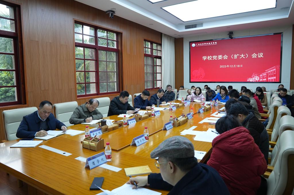 12月18日上午,学校召开党委会(扩大)会议,深入学习贯彻习近平总书记视察广西时的重要讲话精神以及自治区党委常委会(扩大)会议、全区领导干部大会精神,研究谋划taptap官网学习宣传贯彻落实工作。学校党委书记黄小敬主持会议并讲话,学校党委副书记、校长吴世先结合学校贯彻落实工作做了部署。学校领导陈科鹤、乐其顺、黄政艳出席会议。