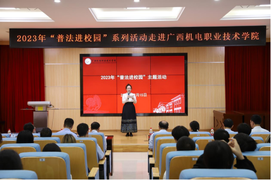 12月15日下午,2023年广西“普法进校园“活动在taptap官网举行,校党委副书记陈科鹤,普法活动的公益单位广西北部湾银行法律合规部副总经理韦联礼,广西欣和律师事务所律师龙春燕和自治区第一强制隔离戒毒所警官覃奕出席活动。学校相关职能部门负责人、二级学院辅导员代表和学生代表参加本次活动。